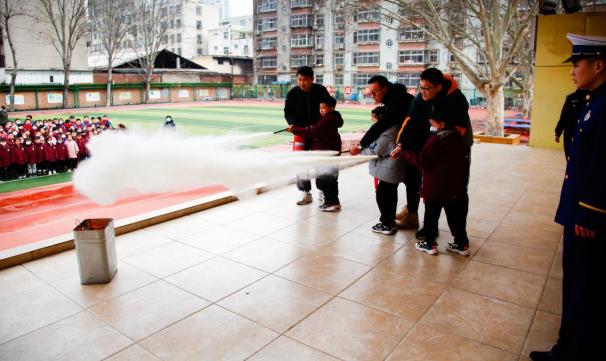 隨后,消防員在消防車前為孩子們認(rèn)真講解了消防車的構(gòu)成與各部分功能,孩子們豎耳傾聽,目不轉(zhuǎn)睛;消防員還為孩子們展示了如何使用高壓水槍,水柱噴射而出,孩子們的歡呼聲此起彼伏;在消防員的指導(dǎo)下,學(xué)校老師和學(xué)生一起使用滅火器實(shí)戰(zhàn)滅火,師生受益良多。
