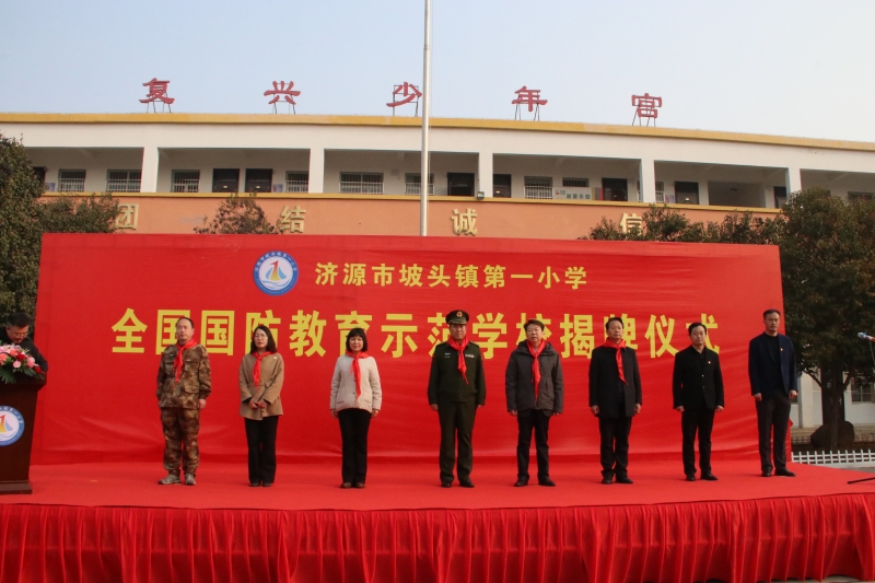 2月23日,在濟(jì)源市坡頭鎮(zhèn)第一小學(xué)校園里,正在舉行一場特別的揭牌儀式。濟(jì)源示范區(qū)人民武裝部政委趙金良、教體局局長程盛等參加儀式。原來,經(jīng)教育部和中央軍委政治工作部認(rèn)定,該校被授予“全國國防教育示范學(xué)校”榮譽(yù)稱號(hào)。