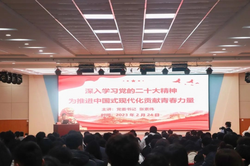 黨委書記張素偉以《深入學習黨的二十大精神 為推進中國式現(xiàn)代化貢獻青春力量》為題,從深刻領悟“兩個確立”的決定性意義、深刻把握中國式現(xiàn)代化的中國特色、我國發(fā)展具備長期穩(wěn)定環(huán)境、新時代青年的擔當與使命等四個方面,逐一詮釋解讀,把道理講深、講透、講活,給學生們上了一堂溝通心靈、啟智潤心、激揚斗志的思政課。