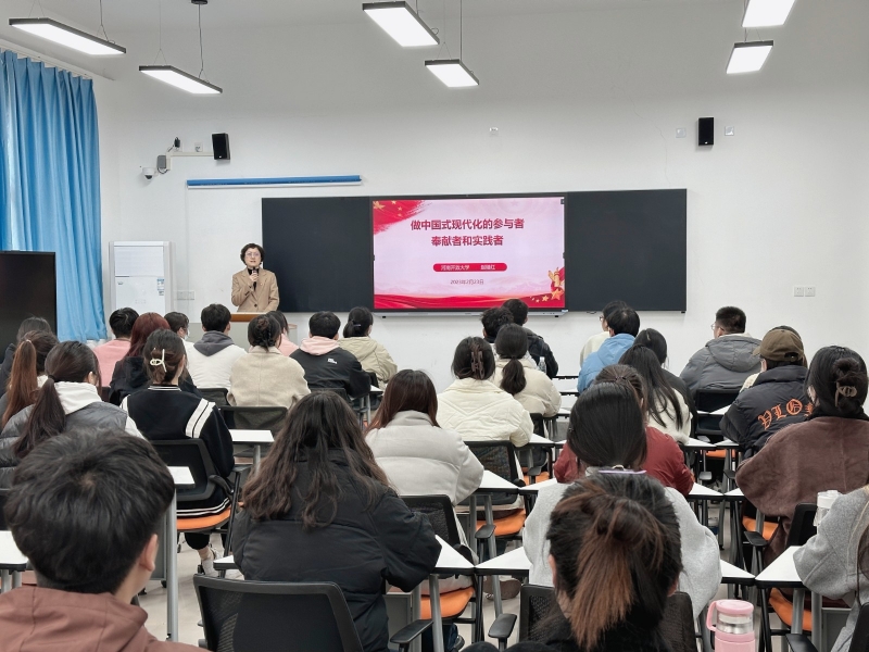趙繼紅緊密結(jié)合黨的二十大報(bào)告中關(guān)于“中國(guó)式現(xiàn)代化”的重要論斷,圍繞中國(guó)式現(xiàn)代化的形成和發(fā)展、中國(guó)式現(xiàn)代化的中國(guó)特色、中國(guó)式現(xiàn)代化的本質(zhì)要求、中國(guó)式現(xiàn)代化道路上新時(shí)代青年的使命擔(dān)當(dāng)?shù)人膫€(gè)部分展開(kāi)授課。她從中國(guó)共產(chǎn)黨的四個(gè)歷史時(shí)期出發(fā),詳細(xì)回顧了中國(guó)共產(chǎn)黨在新民主主義革命時(shí)期、社會(huì)主義革命和建設(shè)時(shí)期、改革開(kāi)放和社會(huì)主義現(xiàn)代化建設(shè)新時(shí)期、中國(guó)特色社會(huì)主義新時(shí)代團(tuán)結(jié)帶領(lǐng)中國(guó)人民在中國(guó)的現(xiàn)代化道路上的長(zhǎng)期探索和中國(guó)式現(xiàn)代化從理想走向現(xiàn)實(shí)的重大成就,以人口規(guī)模巨大、全體人民共同富裕、物質(zhì)文明和精神文明相協(xié)調(diào)、人與自然和諧共生、走和平發(fā)展道路等五個(gè)特征深入講解了中國(guó)式現(xiàn)代化的中國(guó)特色,從本質(zhì)特征、科學(xué)內(nèi)涵、國(guó)際影響等三個(gè)方面詳細(xì)解讀了中國(guó)式現(xiàn)代化的本質(zhì)要求。趙繼紅就新時(shí)代青年如何以青春助力中國(guó)式現(xiàn)代化發(fā)展,對(duì)同學(xué)們提出希望和要求,一是要堅(jiān)定理想信念,鑄牢信仰之基;二是要苦練能力本領(lǐng),增長(zhǎng)實(shí)干之才;三是要勇于擔(dān)當(dāng)作為,踐行初心使命。她勉勵(lì)大家要從中國(guó)的現(xiàn)代化發(fā)展歷程中汲取精神養(yǎng)分和奮斗力量,勇做推進(jìn)中國(guó)式現(xiàn)代化的參與者、奉獻(xiàn)者、實(shí)踐者,從小事做起、從今天開(kāi)始,當(dāng)祖國(guó)和人民需要時(shí)挺身而出,在面對(duì)風(fēng)險(xiǎn)挑戰(zhàn)時(shí)敢于斗爭(zhēng),把青春活力揮灑在全面建設(shè)社會(huì)主義現(xiàn)代化國(guó)家的偉大實(shí)踐中,成就出彩人生。