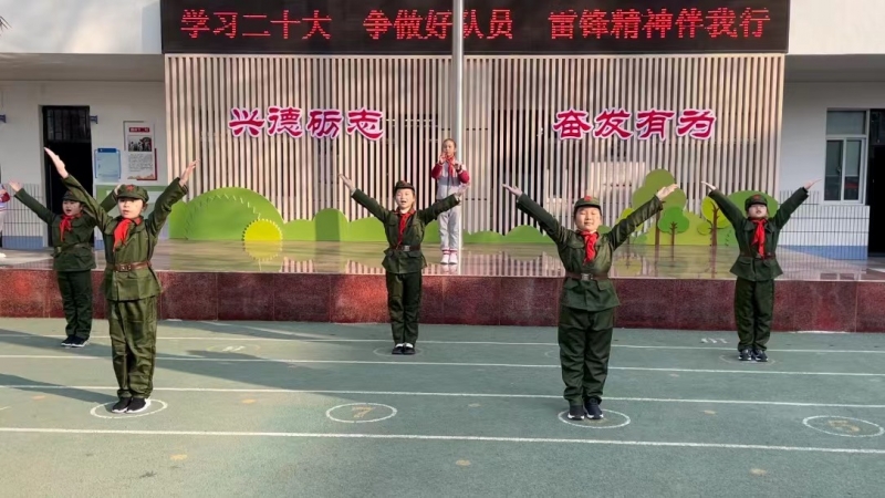 學(xué)校全體師生同唱一首歌,共繪同心圓。《學(xué)習(xí)雷鋒好榜樣》的歌聲嘹亮飛揚(yáng),毛主席的教導(dǎo)謹(jǐn)記心上,伴隨歌聲,鏗鏘有力的手勢(shì)操更是將雷鋒精神深深地扎根在學(xué)生的心中。