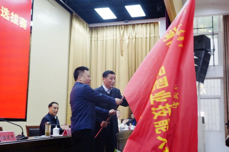 南陽市人民政府向舉辦院校代表河南工業(yè)職業(yè)技術(shù)學(xué)院授旗