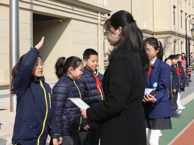 伴隨著嘹亮的國歌,五星紅旗迎著春日的晨光冉冉升起。同學(xué)們用整齊的隊列、標(biāo)準的隊禮、響亮的歌唱展現(xiàn)著新時代隊員的風(fēng)采。二四中隊少先隊員代表用歌舞精彩演繹助人為樂的雷鋒形象,號召同學(xué)們學(xué)習(xí)雷鋒精神,從小事做起幫助他人,讓雷鋒精神在身邊流動。