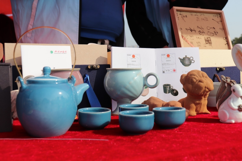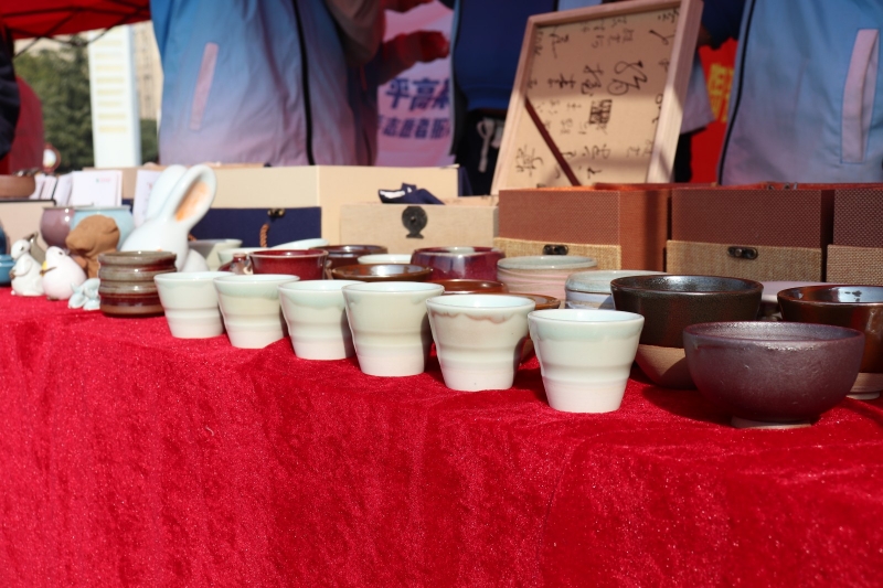 此次活動服務團展出魯山花瓷、鈞瓷、汝瓷等各式陶瓷作品百余件,形式多樣、各具特色的瓷器都是老師和學生手工制作,在傳統(tǒng)工藝的基礎(chǔ)上注入具有現(xiàn)代感的元素,在色彩與器型上別具一格,典雅實用又不失意趣,得到了許多市民的認可。