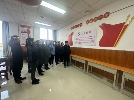 會(huì)后,在支部書(shū)記的帶領(lǐng)下,焦愛(ài)萍和支部黨員一起重溫了入黨誓詞。