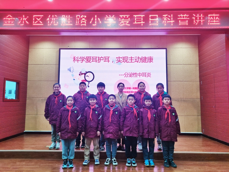活動中,作為鄭州大學第一附屬醫(yī)院耳鼻喉科的護士,黃晶晶用生動有趣的語言向學生們介紹了愛耳日的來歷,耳朵的構造、功能以及用耳護耳的正確方法等相關科普知識。她用生動的PPT,從耳朵的結構和功能,常見的耳部疾病,以及耳部保健小知識三個方面展開講解。提醒同學們要好好關愛耳朵,養(yǎng)成良好衛(wèi)生習慣,在生活中避免噪音、進水、頻繁挖耳等行為,注意保護好聽力。本次“愛耳日”科普教育活動,為優(yōu)勝路小學的孩子普及了聽力健康科學知識,是孩子們了解了愛耳護耳的重要性,提增強他們自身保護耳朵的意識,倡導人人都能“科學用耳,健康用耳”。