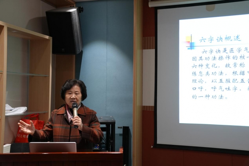 活動中,王華蘭為社區(qū)居民現(xiàn)場講授了六字訣養(yǎng)生法。圍繞社區(qū)居民普遍關(guān)心的老年養(yǎng)生健康問題,結(jié)合多年的自身臨床經(jīng)驗,針對日常生活中的一些常見病,用通俗易懂的語言和生動形象的事例,進行了深入淺出的講解。并現(xiàn)場教學(xué)演示了六字訣中“噓”字訣的練習(xí)要點。王華蘭對如何健康養(yǎng)生提出了指導(dǎo)性的建議,倡導(dǎo)大家要樹立健康意識,掌握健康保健知識。專家的授課,內(nèi)容充實、互動頻繁,贏得了社區(qū)居民熱烈的掌聲。