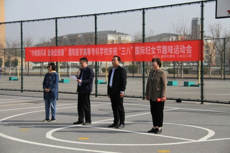 桃花含羞嫣然,楊柳嫩芽蹁躚。在“三八”國際婦女節(jié)到來之際,為進一步激發(fā)學(xué)校女教工愛崗敬業(yè)、銳意進取的工作熱情,充分發(fā)揮“半邊天”的作用,3月7日下午,濮陽醫(yī)學(xué)高等專科學(xué)校在室外籃球場舉辦了“巾幗展風(fēng)采,運動促健康”慶“三八”婦女節(jié)趣味運動會,活動由副校長袁俊齋主持。