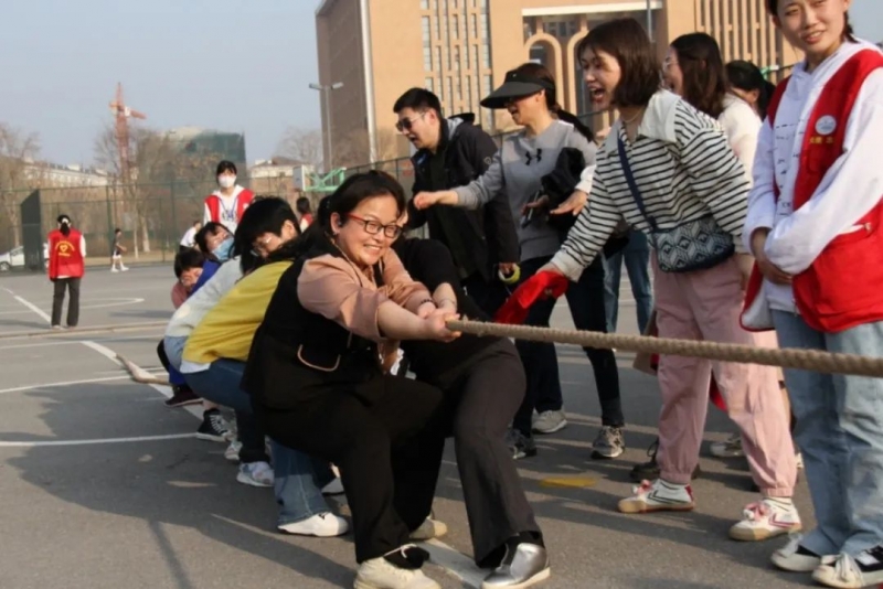 本次比賽由組織人事部牽頭,共設(shè)置“五人六足”“穿越呼啦圈”“螃蟹賽跑”“夾乒乓球”“一分鐘仰臥起坐”“拔河”等八個比賽項目。既有速度的角逐,也有對團隊協(xié)作能力的考驗,活動現(xiàn)場趣味盎然,精彩場面不時上演。賽場上,以袁校長為代表的參賽人員個個精神飽滿,鉚足勁全身心投入比賽中;賽場外,大家的臉上都洋溢著燦爛的笑容,賽場外的加油聲、助威聲、歡笑聲更是匯成了一片歡樂的海洋。