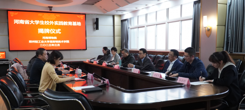 隨后,河南博物院副院長翟紅志、文創(chuàng)辦主任宋華,學院院長石品、副院長王遠共同為“河南省大學生校外實踐教育基地”揭牌。