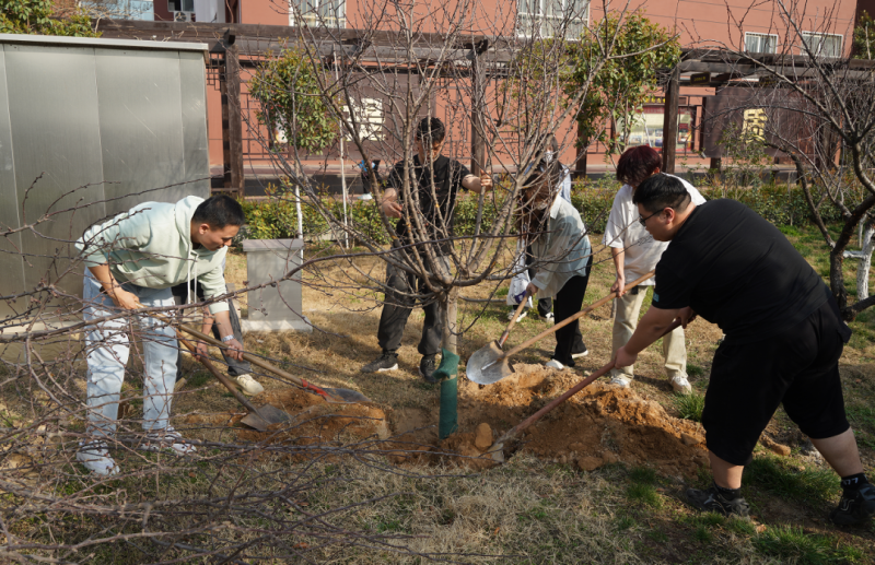 植樹現(xiàn)場,在專業(yè)人士的指導(dǎo)下,老師和同學(xué)們激情高昂、干勁十足,在各自分配的領(lǐng)域有序開工,擼起袖子、拿起鐵鍬,剖土、扶苗、踩實(shí)、澆水,鐵鍬一鏟一鏟落下,嫩綠的樹苗漸次豎起,草木葳蕤叢叢翠綠,目之所及一片蓬勃生機(jī)。師生們邊揮汗如雨地植樹,一邊交流互述著植樹的經(jīng)驗(yàn),分享著植樹活動(dòng)帶來的樂趣。大家三五人一組,配合默契,種下一棵棵海棠樹,許下一個(gè)個(gè)綠色的夢想。同學(xué)們紛紛表示,要以實(shí)際行動(dòng)保護(hù)生態(tài)環(huán)境,共同履行環(huán)保責(zé)任,為建設(shè)綠色家園貢獻(xiàn)力量。