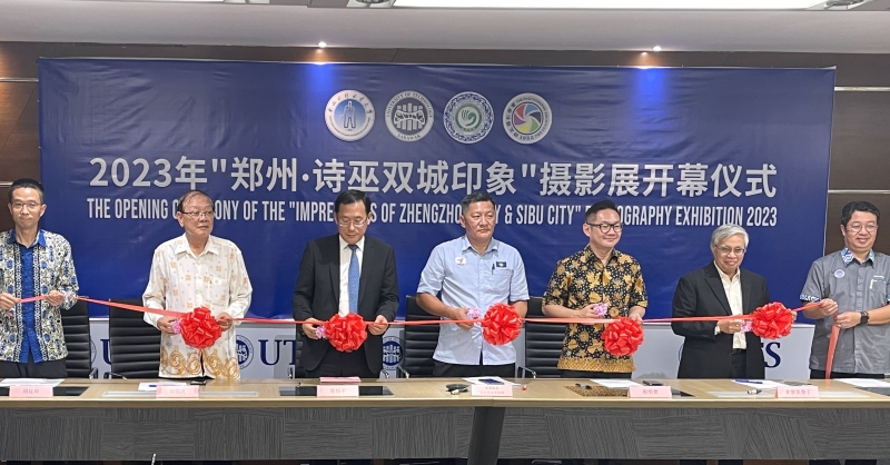 最后,在全體參會嘉賓的見證下,砂拉越科技大學會場的嘉賓們?yōu)?023年“鄭州·詩巫雙城印象”攝影展剪彩開幕。