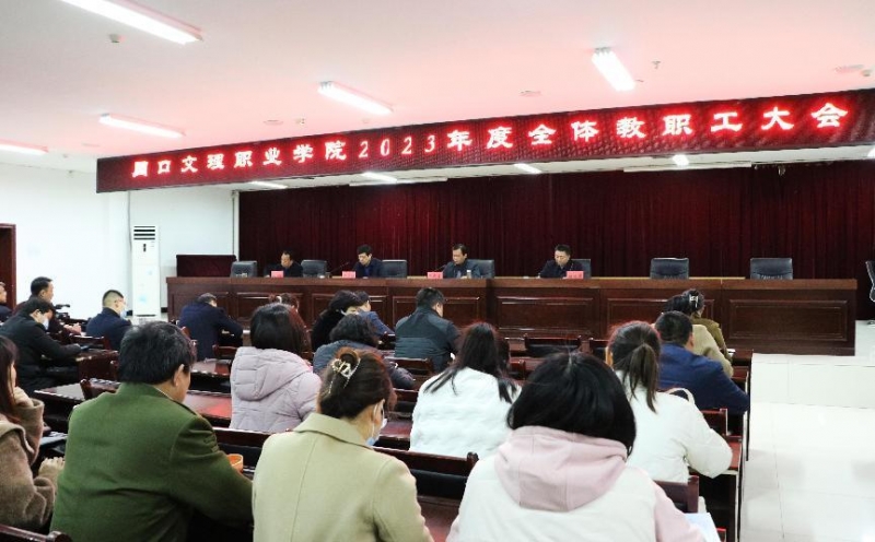 3月16日,周口文理職業(yè)學(xué)院召開2023年度全體教職工大會(huì),回顧總結(jié)上一年度工作,安排部署本學(xué)年度重點(diǎn)工作任務(wù),進(jìn)一步統(tǒng)一思想、凝心聚力、再鼓干勁,推動(dòng)周口文理職業(yè)學(xué)院高質(zhì)量發(fā)展。校黨委書記宋曉東,黨委副書記、校長(zhǎng)于秀邦出席會(huì)議并作重要講話,副校長(zhǎng)程運(yùn)平、韓廣飛出席會(huì)議,全體教職工參會(huì)。大會(huì)由程運(yùn)平主持。
