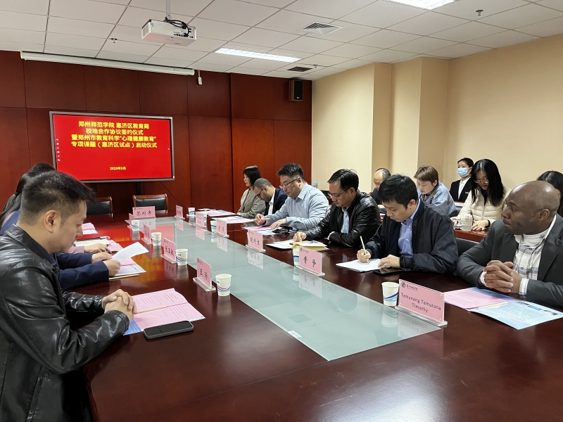 3月23日,惠濟(jì)區(qū)教育局與鄭州師范學(xué)院河南省心理學(xué)科技創(chuàng)新平臺聯(lián)合體戰(zhàn)略合作協(xié)議簽約儀式暨鄭州市教育科學(xué)“心理健康教育”惠濟(jì)區(qū)試點專項課題啟動儀式在鄭州師范學(xué)院東校區(qū)舉行。鄭州師范學(xué)院科研處處長胡明生、惠濟(jì)區(qū)教育局副局長崔永麗、鄭州市教育局教育科學(xué)研究所所長張五敏、鄭州市教育局教育科學(xué)研究所副所長王旸、惠濟(jì)區(qū)教育局教科室主任吳亮以及科技部“一帶一路”創(chuàng)新團(tuán)隊外籍專家等相關(guān)人員出席活動。活動由河南省心理學(xué)科技創(chuàng)新平臺聯(lián)合體主任晉爭主持。
