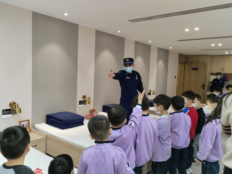 活動(dòng)最后,孩子們參觀了消防員叔叔的寢室,干凈的環(huán)境、豆腐塊似的被褥、整齊擺放的物品都讓孩子們連連贊嘆。