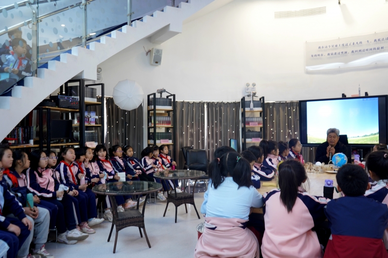 隨后,來自天文館的李德范館長為孩子們帶來了一場精彩紛呈的天文小講堂。李館長引用黑格爾的一句名言:“一個民族有一些仰望星空的人,這個民族才有希望;一個民族只關心自己腳下的事情,這個民族是沒有未來的。”專業(yè)的講解、良好的環(huán)境、志同道合的小伙伴,隊員們興趣盎然,積極搶答。在聆聽與互動中,高效學習和了解天文知識,玩得開心,學得有趣。