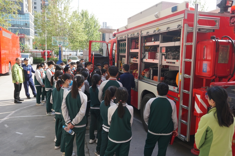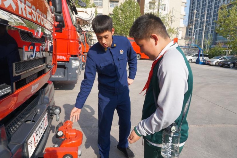 走進(jìn)消防大隊的大門,孩子們立刻被一輛輛停放整齊的消防車和救援器材所吸引。消防員帶領(lǐng)學(xué)生們近距離地觀察消防車,詳細(xì)地向孩子們講解了各輛車的名稱、功能、操作事項及車內(nèi)各類救援器材和在滅火救援任務(wù)中的用途。