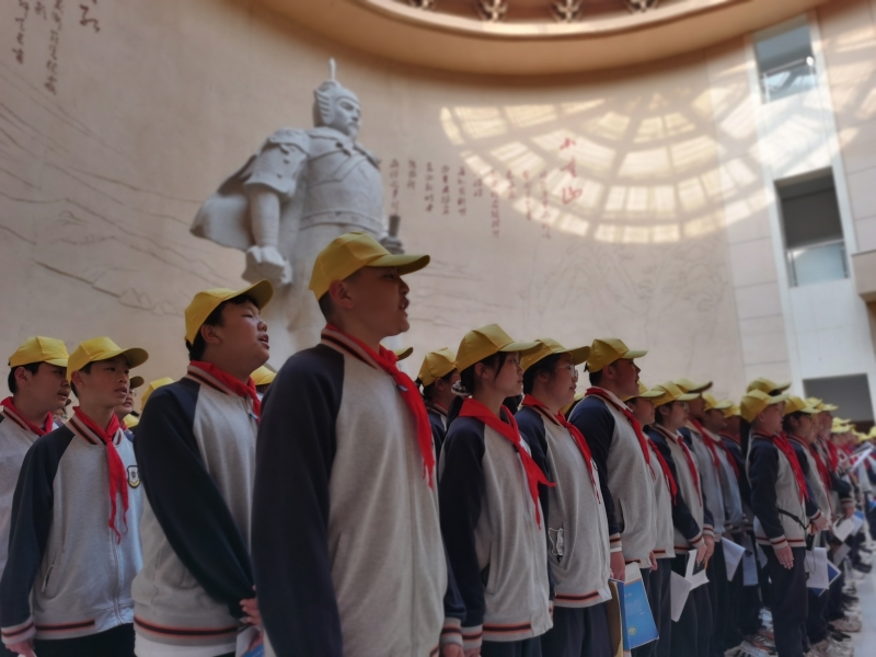 第二站,師生來到七朝古都安陽。學(xué)生走進岳飛廟,回顧、瞻仰岳飛忠心報國、嚴(yán)謹(jǐn)治軍、所向披靡的愛國事跡,那段金戈鐵馬的景象仿佛浮現(xiàn)在眼前。師生集體深情朗誦《滿江紅》,激揚的文字、壯烈的豪情充滿心田。通過參觀中國文字博物館和殷墟歷史遺跡,學(xué)生在歷史的長河中觸摸甲骨文的斑駁墨跡,了解漢字的演變歷程,感受中華古老文化的精髓和魅力,深知傳承文化重任在肩。