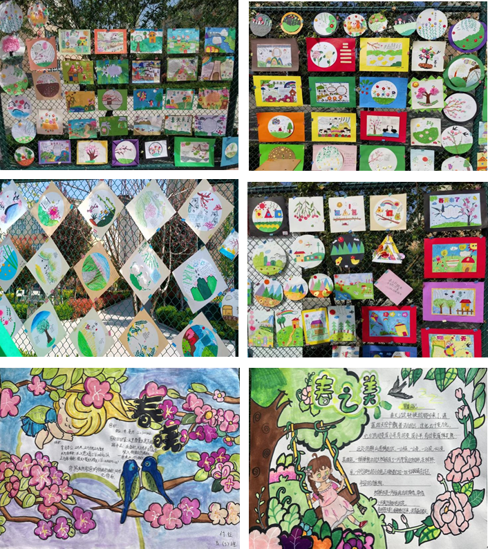低年級學(xué)生側(cè)重搜集描寫春天的詞語、古詩等,創(chuàng)辦手抄報;中高年級學(xué)生側(cè)重寫賞春、植樹、放風(fēng)箏習(xí)作,展現(xiàn)語文教學(xué)之文字之美。孩子們觸摸春天,組合制作風(fēng)箏圖形、繪制思維導(dǎo)圖、創(chuàng)新設(shè)計(jì)“春天里的數(shù)學(xué)”。學(xué)生在老師指導(dǎo)下整理描寫春天的英語單詞,圖文并茂描繪春天——充滿生機(jī)與活力。美術(shù)、音樂老師精心構(gòu)思,積極引導(dǎo)孩子們與生活鏈接,用雙手繪就春天,用聲音贊美春天,留下“尋春、踏春、賞春、贊春”的特色足跡。