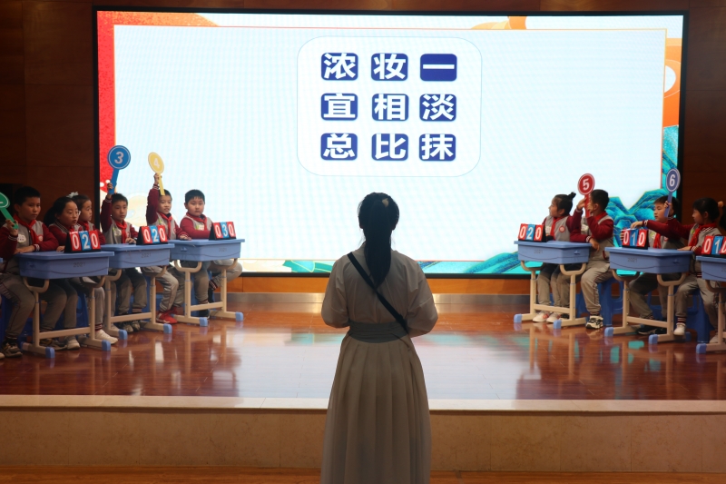 “詩詞達人”挑戰(zhàn)賽精彩激烈,包括古詩接龍、看圖猜詩、詩詞文化常識、飛花令等。“小達人”們背誦詩句時專心致志,回答問題時才思敏捷,在搶答環(huán)節(jié)中眼疾手快,為我們帶來了一場別開生面、精彩紛呈的詩詞盛宴。