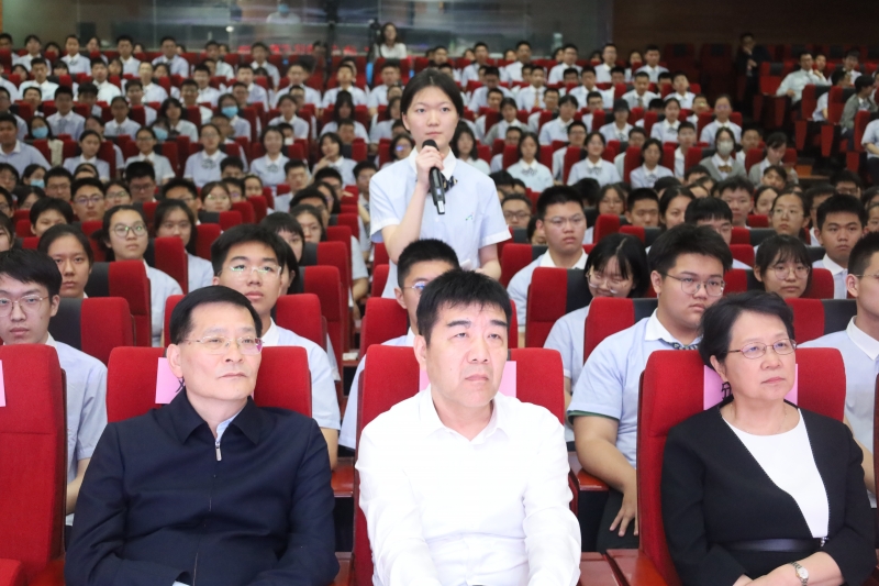 施一公先后介紹了楊振寧、李政道發(fā)現(xiàn)宇稱不守恒規(guī)律和屠呦呦成功提取青蒿素等案例,激發(fā)現(xiàn)場學生對科學探索的興趣:“他們的案例告訴我們,成功的科學家往往敢于質(zhì)疑、敢于嘗試和接受失敗……”