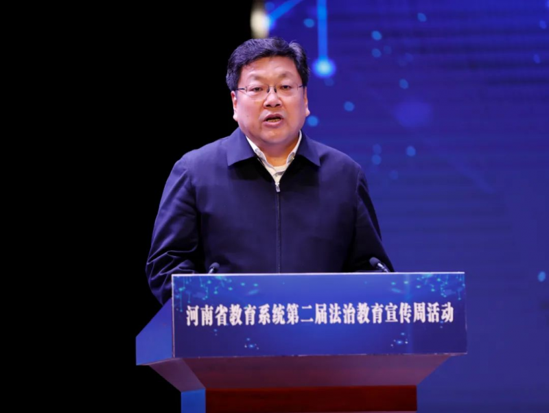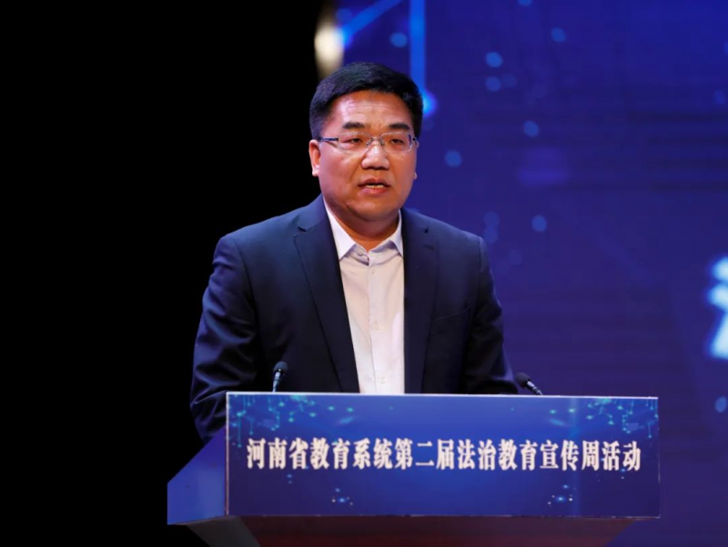 4月17日,河南省教育系統(tǒng)第二屆法治教育宣傳周活動(dòng)啟動(dòng)儀式在河南省第二實(shí)驗(yàn)中學(xué)舉行。省委教育工委副書記、省教育廳黨組書記、廳長(zhǎng)毛杰,省司法廳副廳長(zhǎng)魯建學(xué)出席儀式并講話。省教育廳二級(jí)巡視員董玉民、楊光出席啟動(dòng)儀式。省教育廳、省司法廳有關(guān)處室負(fù)責(zé)同志參加啟動(dòng)儀式。