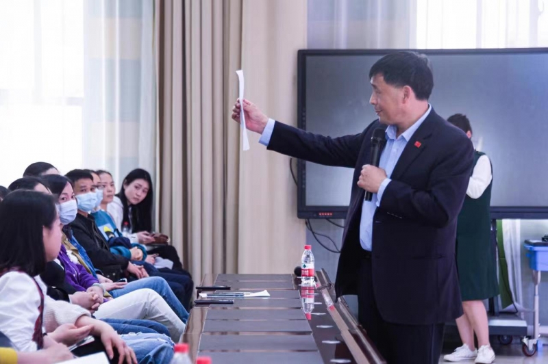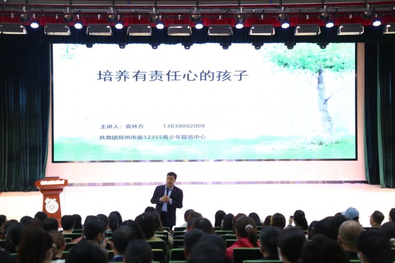 學(xué)生講座結(jié)束后,袁林方主任以“用心呵護(hù),用愛陪伴”為主題針對上一場學(xué)生的問題開始進(jìn)行家長講座。袁主任憑借多年到學(xué)校進(jìn)行心理輔導(dǎo)的經(jīng)驗(yàn),圍繞“為何培養(yǎng)有責(zé)任心的孩子、如何培養(yǎng)有責(zé)任心的孩子”等方面,為家長提出了寶貴意見,他還結(jié)合相關(guān)案例進(jìn)行具體闡釋,家長們受益匪淺。