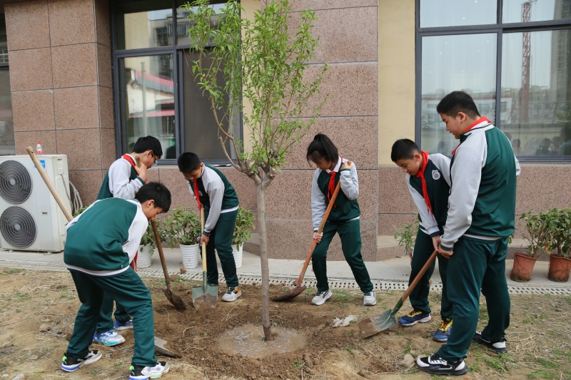 植樹活動有條不紊地進(jìn)行著,家長代表也來到了學(xué)校,同學(xué)們更是熱情高漲,在老師和家長的指導(dǎo)下,拿著鐵鍬、水桶等工具,挖坑、植樹、填土、澆水……老師、家長還有同學(xué)們密切配合,相互協(xié)作,相互鼓勁,以最誠的心表達(dá)自己最真的情。整個(gè)植樹現(xiàn)場洋溢著歡快的勞動氛圍。栽種結(jié)束后,老師、家長代表和同學(xué)們在樹木前合影留念。