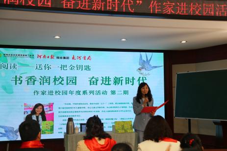 在第28個世界讀書日來臨之際,為提升校園閱讀氛圍,激發(fā)師生讀書熱情,養(yǎng)成“多讀書、讀好書、會讀書”的良好習(xí)慣。4月19日上午,鄭州市金水區(qū)黃河路第二小學(xué)舉行“書香潤校園,奮進(jìn)新時代”作家進(jìn)校園活動,著名兒童作者肖定麗走進(jìn)校園和孩子們在一起分享閱讀的快樂。