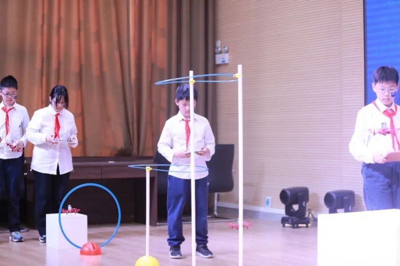 越障、打靶、翻滾等一系列特技動作,孩子們都信手拈來。起飛、前進、旋轉(zhuǎn)、降落,揮旗手和操作手密切配合,十分熟練。隊伍結(jié)盟、得分共享,比賽不再是單打獨斗,拼的是團隊協(xié)作和策略謀劃。