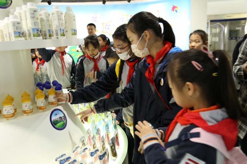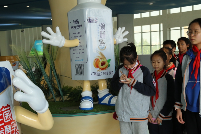 在產(chǎn)品展廳,墻面文化和各種熟悉的包裝展示模型吸引了孩子們的注意,講解員小姐姐從企業(yè)概況、乳文化大百科、益生菌大冒險、世界乳文化,讓孩子們大開眼界。隨后,講解員還為孩子們分發(fā)了新鮮出爐的酸奶讓孩子們品嘗。他們評議著自己最喜歡的包裝和口味,迫不及待地向同伴和老師推薦。
