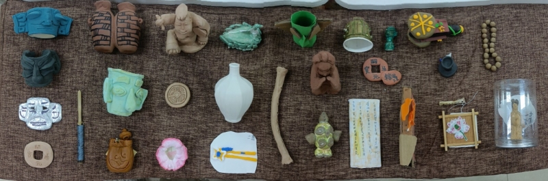 學(xué)生通過搜集歷史資料,了解文物仿制的相關(guān)知識,掌握了相關(guān)的制作方法和步驟,或自己動手,或團隊合作,仿制出了一件件逼真的歷史文物。本次活動收到作品31件,涉及生產(chǎn)工具、生活用品、禮器、錢幣、書畫、骨器等多方面內(nèi)容,涵蓋了不同時期的經(jīng)典文物,大部分作品具有一定的仿制和創(chuàng)新水準,有著一定的歷史文物的觀賞價值。