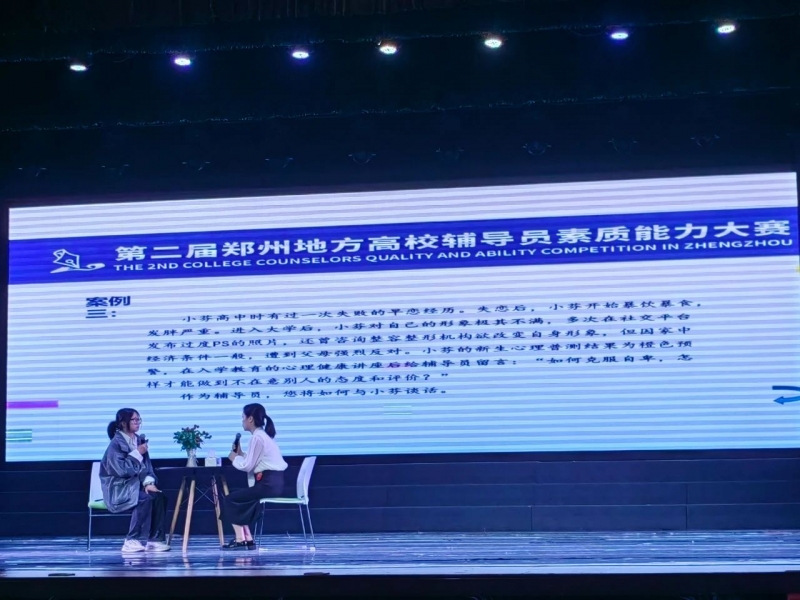 本屆輔導(dǎo)員素質(zhì)能力大賽由鄭州市高校擇優(yōu)推薦輔導(dǎo)員代表參賽,設(shè)置基礎(chǔ)知識、案例分析、談心談話三個考察環(huán)節(jié),全面綜合考察輔導(dǎo)員的工作能力和綜合素養(yǎng),以賽代訓(xùn),推進(jìn)輔導(dǎo)員隊伍建設(shè),提高學(xué)生思想政治教育工作水平。比賽中,嵩山少林武術(shù)職業(yè)學(xué)院輔導(dǎo)員張曉丹理論基礎(chǔ)扎實,工作能力過硬,從容自信,宣傳闡述習(xí)近平新時代中國特色社會主義思想、黨的二十大精神等理論政策,講述剖析學(xué)生工作案例,獲得了各環(huán)節(jié)評委的一致肯定,一路領(lǐng)先,總積分名列前茅,榮獲特等獎!