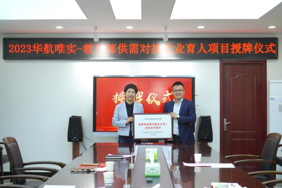授牌儀式上,企業(yè)方為平頂山職業(yè)技術(shù)學(xué)院授牌“教育部供需對接就業(yè)育人項(xiàng)目合作院校”。