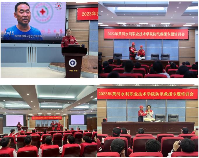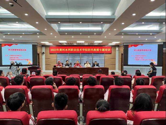 為貫徹落實習(xí)近平總書記對防汛救災(zāi)工作的重要指示精神,提高全校廣大青年學(xué)生的防汛意識和救援技能,保障突發(fā)事故時,能夠高效、有序地進行搶險與救援處理,在全國第15個防災(zāi)減災(zāi)日宣傳活動來臨之際,5月9日下午,黃河水利職業(yè)技術(shù)學(xué)院在3號實訓(xùn)館報告廳組織開展2023年度防汛救援專題培訓(xùn)活動。共青團開封市委社聯(lián)部部長閆琰、金耀街道綜治辦主任張拯、鄭州市紅十字水上義務(wù)救援隊隊長牛振西、開封市藍(lán)鯨水上救援隊隊長岳星、河南省日報社及黃河水利職業(yè)技術(shù)學(xué)院各學(xué)院學(xué)生代表220余人參與本次活動。活動由校團委書記范龍主持。