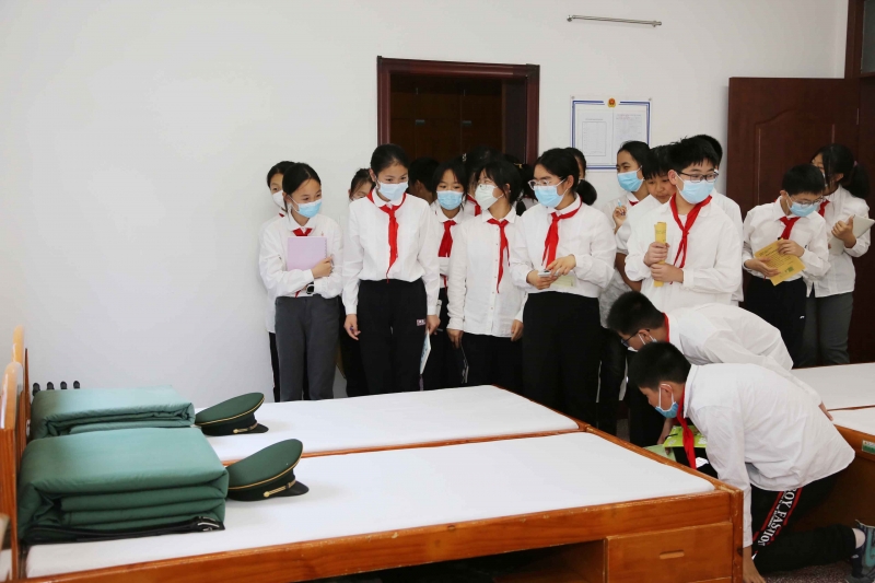 活動中,學生們集中觀看了戰(zhàn)士們科目演示、刺殺操匯報等表演,戰(zhàn)士們鏗鏘有力的步伐聲和嘹亮的口號聲,讓師生們很受震撼,直觀地感受到戰(zhàn)士們扎實的基本功和新時代軍人的強大力量。隨后,學生們在戰(zhàn)士們的帶領(lǐng)下,分組進行參觀。在支隊史館中,學生們了解了軍裝的演變歷程、任務(wù)中的活動照片、鄭州“7.20”抗洪搶險中的相關(guān)資料,以及所獲得的部分榮譽。一幅幅珍貴的畫面、一個個感人的事跡、一件件真實的物件、一份份詳細的資料,使學生們進一步感受到武警某部所做的巨大貢獻,感受到中國軍人一心為民、不畏強敵、敢打必勝的革命精神。在官兵生活區(qū),潔白的床單、“豆腐塊”一樣的被子、擺放成一條直線的書籍、水杯,使師生感受到軍人艱苦奮斗的崇高精神和日常生活的嚴謹有序。