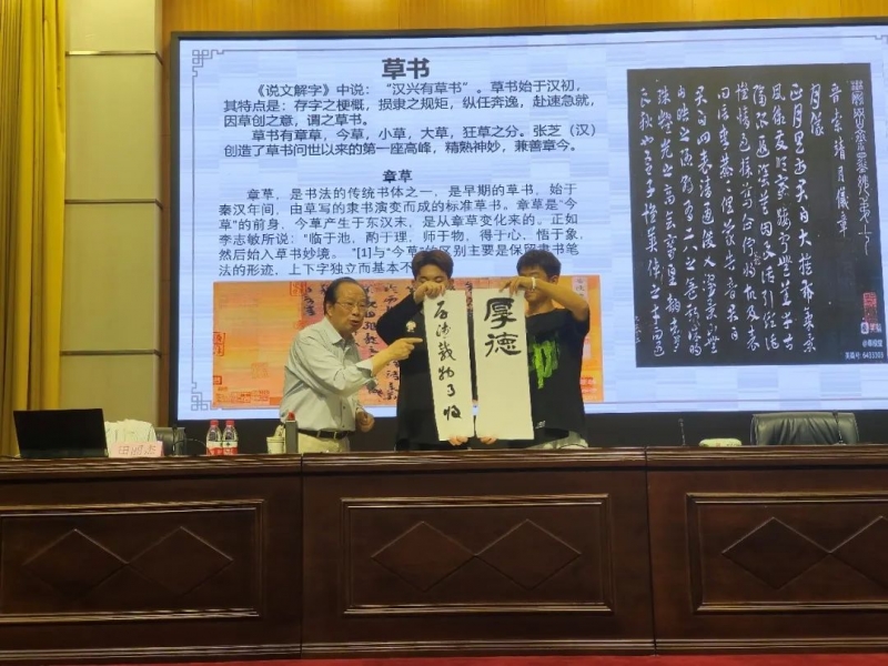 5月10日,鄭州大學(xué)體育學(xué)院舉辦了以“藝術(shù)人生”為主題的公共藝術(shù)教育講座——《傳統(tǒng)文化與書法藝術(shù)》。本次講座邀請了學(xué)院客座教授,焦作市書協(xié)名譽(yù)主席田麗杰老師。