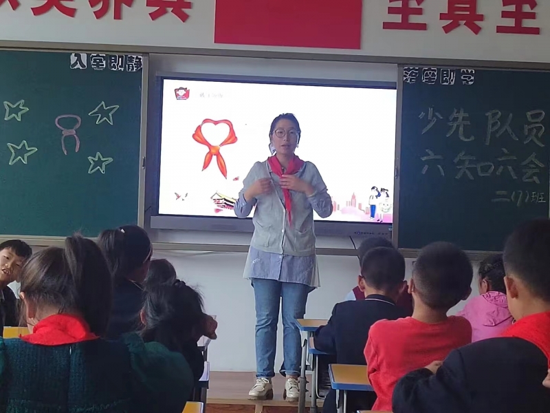 培訓(xùn)由學(xué)校少先隊(duì)大隊(duì)輔導(dǎo)員宋予鵬主講。各中隊(duì)輔導(dǎo)員老師向隊(duì)員介紹了少先隊(duì)隊(duì)名、隊(duì)旗、隊(duì)徽、隊(duì)禮以及相關(guān)標(biāo)志等;然后,帶領(lǐng)大家觀看視頻《致敬紅領(lǐng)巾》,對(duì)少先隊(duì)隊(duì)史進(jìn)行講解,并對(duì)少先隊(duì)“六知六會(huì)一做”進(jìn)行全面解析,使大家知悉少先隊(duì)員必須會(huì)佩戴紅領(lǐng)巾、會(huì)敬隊(duì)禮、會(huì)呼號(hào)、會(huì)唱隊(duì)歌、會(huì)背入隊(duì)隊(duì)詞、會(huì)寫(xiě)《入隊(duì)申請(qǐng)書(shū)》,入隊(duì)之前還應(yīng)為人民做一件好事。