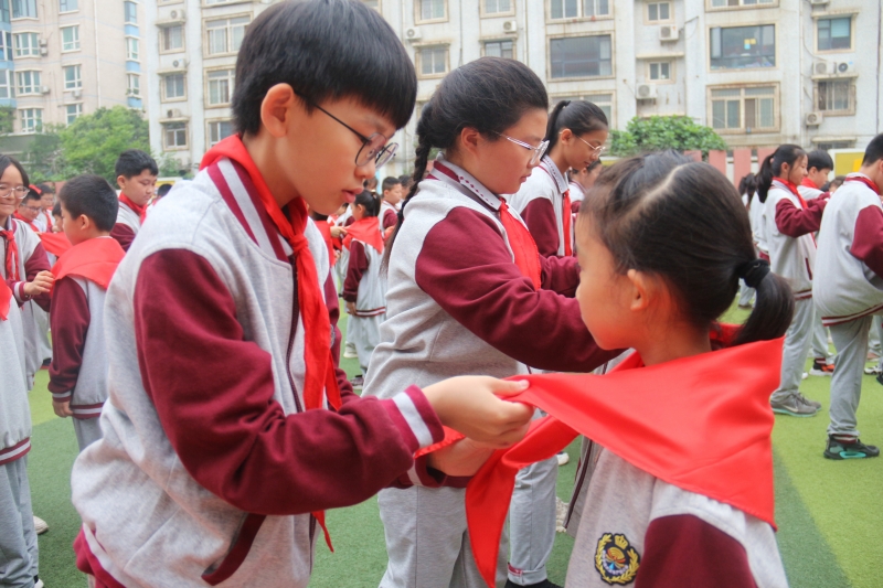 為深入學(xué)習(xí)貫徹落實(shí)習(xí)近平總書記關(guān)于少年兒童和少先隊(duì)工作的重要指示精神,進(jìn)一步增強(qiáng)少先隊(duì)組織的光榮感和吸引力,增強(qiáng)少先隊(duì)員光榮感和組織歸屬感,5月26日上午,金水區(qū)豐產(chǎn)路小學(xué)在操場(chǎng)舉行了以“童心向黨 領(lǐng)巾飄揚(yáng)”為主題的新隊(duì)員入隊(duì)儀式。一年級(jí)128名、二年級(jí)120名同學(xué)光榮地加入中國少年先鋒隊(duì),戴上鮮艷的紅領(lǐng)巾,成為少先隊(duì)組織的一員。