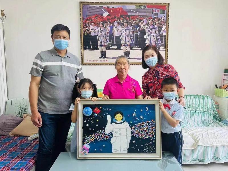 2023年5月30日9時(shí)31分,神州十六號(hào)載人飛船的順利發(fā)射成功,這在金水區(qū)新建幼兒園小朋友中引發(fā)了一場關(guān)于浩瀚太空的討論熱潮,為了讓小朋友更近距離地了解航天英雄,激發(fā)小朋友對(duì)神秘太空的美好向往,厚植愛國主義情懷。5月31日上午,金水區(qū)第九幼兒園的老師和小朋友代表,以及琥珀名城社區(qū)工作人員一起走進(jìn)了航天英雄劉洋的家,近距離聆聽了劉洋母親牛喜云女士講述航天英雄的故事。