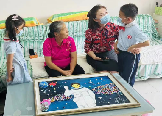 牛喜云奶奶告訴孩子們,當(dāng)年劉洋阿姨還在上大學(xué)的時(shí)候,時(shí)常想家,她就把鄉(xiāng)愁折成365顆小星星,裝在心形盒子里寄給父母。即使在她乘坐神州十四號(hào)太空“出差”期間,她也將寫滿寄語的紙條折成星星,裝進(jìn)“漂流瓶”,演繹著中國航天人的浪漫和情懷。隨后,金水區(qū)第九幼兒園小朋友代表給牛喜云奶奶送上九幼師生共同制作的作品《星星的禮物》。