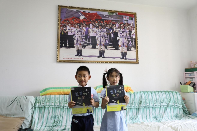 牛喜云奶奶看到孩子們非常開心,熱情的講起了劉洋阿姨小時(shí)候的故事,小朋友表示也要學(xué)習(xí)劉洋阿姨長大上太空當(dāng)宇航員。恰逢六一兒童節(jié),牛喜云奶奶為小朋友們準(zhǔn)備了一份特殊而有意義的禮物,是神州十五號(hào)載人飛船上執(zhí)行太空任務(wù)的航天英雄鄧清明的女兒鄧滿琪所著的繪本《爸爸的秘密》。