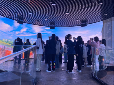 進(jìn)入廟底溝博物館,在講解員的帶領(lǐng)下,師生們走進(jìn)“花開(kāi)中國(guó)”展廳,沉浸式體驗(yàn)讓同學(xué)們初步感受到仰韶文化之美。聽(tīng)講解、看文物、體驗(yàn)互動(dòng)裝置,多重感官體驗(yàn)為師生帶來(lái)美的享受。當(dāng)同學(xué)們了解到2023年中央廣播電視總臺(tái)兔年春節(jié)聯(lián)歡晚會(huì)上的彩陶花瓣紋圖案就是來(lái)自于仰韶文化廟底溝類型時(shí),臉上洋溢著深深的自豪與幸福。在環(huán)幕影廳,師生們身臨其境體驗(yàn)仰韶文化與中華早期文明的發(fā)生歷程,同學(xué)們紛紛舉起手機(jī)記錄下美妙的時(shí)光。