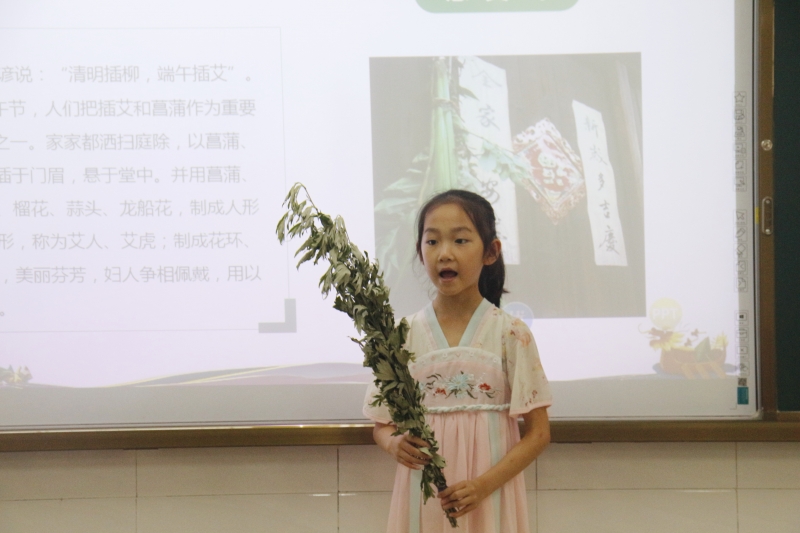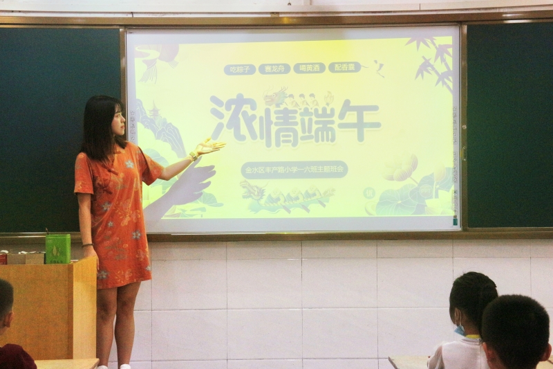 班會(huì)課前,師生們做了大量準(zhǔn)備工作。他們利用課余時(shí)間搜集有關(guān)端午節(jié)的資料及詩詞,對端午節(jié)及其習(xí)俗的來歷和屈原的生平、主要成就有了初步的了解。班會(huì)課上,班主任老師首先帶領(lǐng)孩子們追溯了端午節(jié)的由來,給大家講述了屈原的故事,讓孩子們明白端午節(jié)不只是粽子節(jié)、龍舟節(jié),更是民族節(jié)、愛國節(jié)。班主任老師還向?qū)W生們介紹了有關(guān)端午的習(xí)俗:吃粽子、懸艾葉、栓五色絲線等,感受傳統(tǒng)佳節(jié)的獨(dú)特魅力。