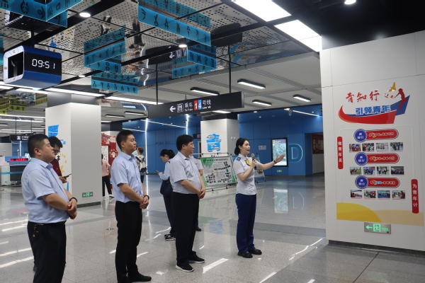 之后,與會(huì)人員參觀了地鐵4號(hào)線著力打造的“青年主題車站”---會(huì)展中心站。與會(huì)教師與在該車站就職的幾名優(yōu)秀畢業(yè)生進(jìn)行交流談心,對(duì)地鐵運(yùn)營(yíng)管理新設(shè)備、新技術(shù)、新規(guī)章有了更直觀的認(rèn)知。最后,黨員教師開展了校企黨建聯(lián)建地鐵志愿服務(wù)。