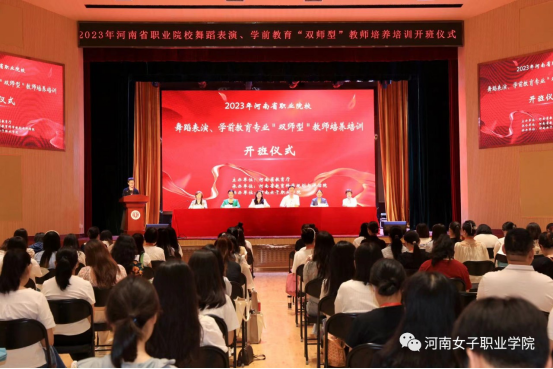 6月21日上午,2023年河南省職業(yè)院校舞蹈表演、學(xué)前教育專業(yè)“雙師型”教師培養(yǎng)培訓(xùn)在河南女子職業(yè)學(xué)院開班。河南省教育廳職業(yè)教育與成人處副處長任遠(yuǎn)、河南女子職業(yè)學(xué)院黨委書記李立峰、校長郭麗萍、校總督學(xué)徐紅娟,學(xué)前教育學(xué)院長王雪萍、音樂與傳媒學(xué)院院長胡多歌等出席開班儀式,來自全省職業(yè)院校的百余名學(xué)員將開啟為期45天的“雙師型”教師培養(yǎng)培訓(xùn)。
