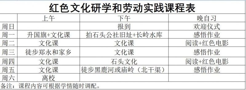 臨近期末,正是總結(jié)提升的關(guān)鍵期,為不耽誤孩子們的文化課學(xué)習(xí),同時(shí)也能真正走進(jìn)自然,城北中學(xué)與基地校認(rèn)真探討,結(jié)合學(xué)生的學(xué)習(xí)規(guī)律及興趣特點(diǎn),制定了周密科學(xué)的紅色文化研學(xué)和勞動(dòng)實(shí)踐課程。