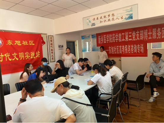 6月26日上午,新鄉(xiāng)醫(yī)學(xué)院藥學(xué)院教工第三黨支部來(lái)到對(duì)口幫扶的新鄉(xiāng)市東旭社區(qū),開展高考志愿填報(bào)輔導(dǎo)活動(dòng)。幾把椅子幾張桌子,在社區(qū)會(huì)議室里開展臨時(shí)志愿填報(bào)咨詢輔導(dǎo)課,大學(xué)老師用豐富的經(jīng)驗(yàn)給考生和家長(zhǎng)們“想點(diǎn)子”“指迷津”。