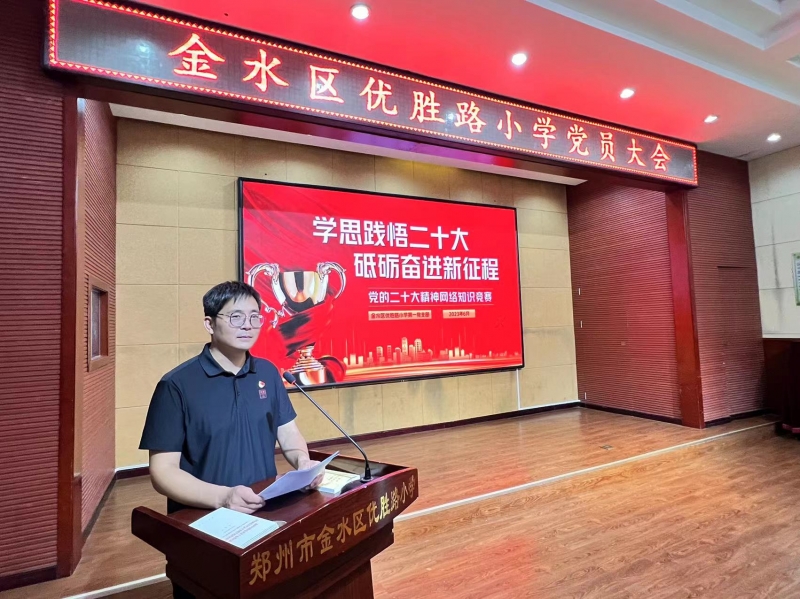 為積極響應(yīng)金水區(qū)區(qū)委組織部的號召,喜迎第102個“七一”建黨節(jié)的到來,進一步深入學習貫徹習近平新時代中國特色社會主義思想和黨的二十大精神,金水區(qū)優(yōu)勝路小學第一黨支部開展了“學思踐悟二十大 砥礪奮進新征程”黨的二十大精神知識競賽活動。