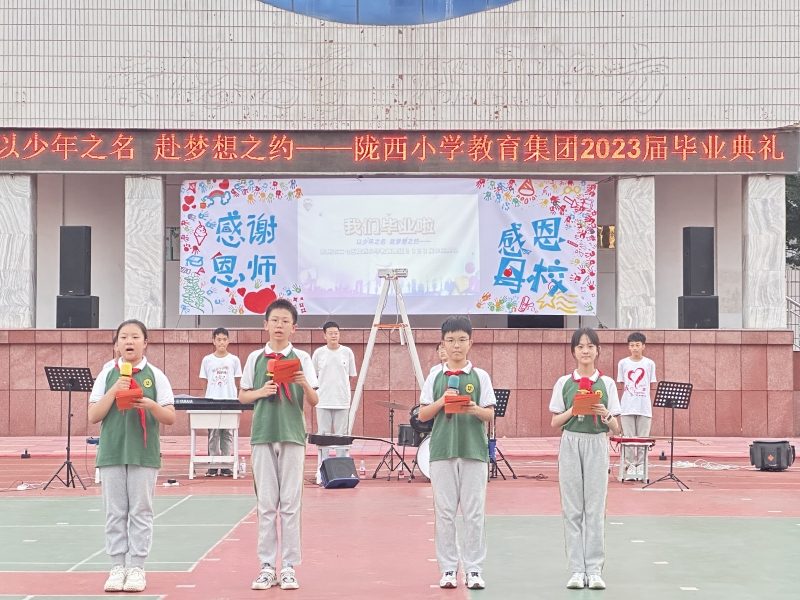 “緊握住飛馳中的韶華,披星戴月心懷夢(mèng)想出發(fā)……”6月30日晚,鄭州市二七區(qū)隴西小學(xué)教育集團(tuán)“以少年之名,赴夢(mèng)想之約”2023屆畢業(yè)典禮舉行。鄭州市二七區(qū)隴西小學(xué)兩校區(qū)全體行管、六年級(jí)師生和家長(zhǎng)志愿者們出席典禮。